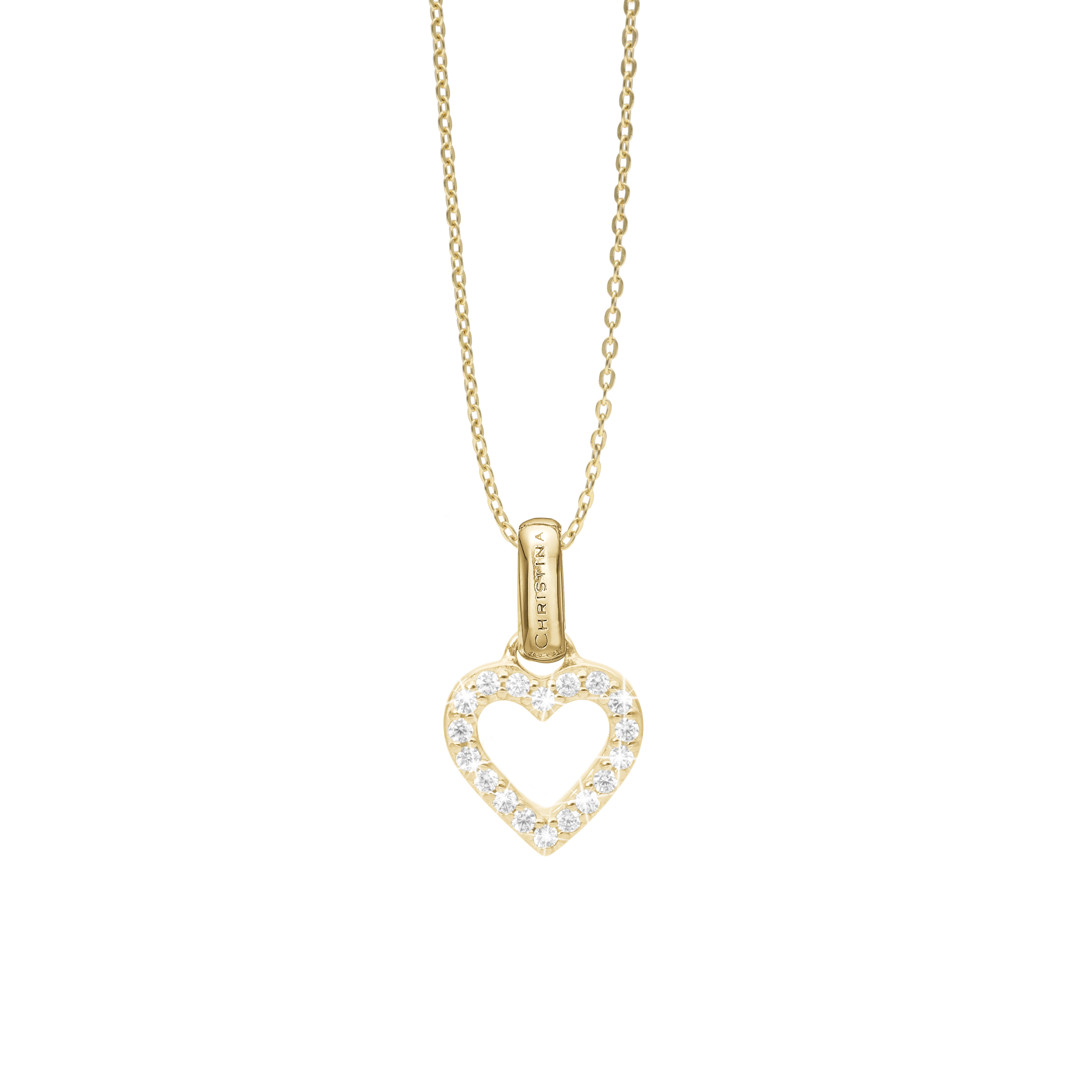 Shimmery Heart Vedhæng - Blankpoleret Forgyldt Sterling Sølv m. 18 Hvide Cubic Zirkonia