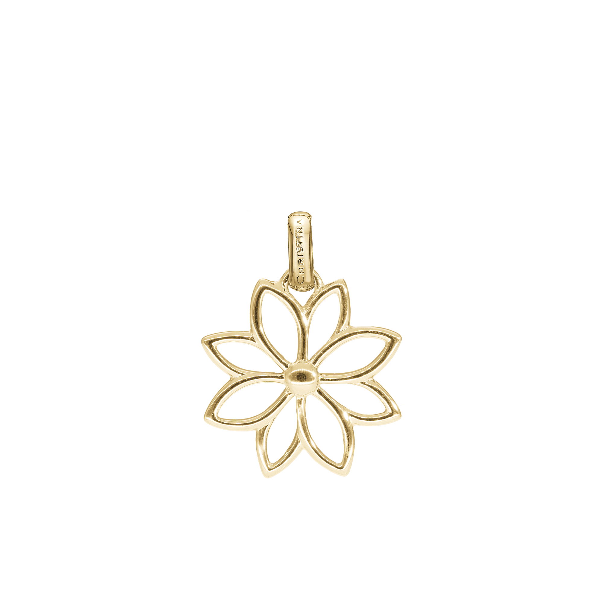 Mød CHRISTINA® Simple Flower – et allergivenligt vedhæng i 925 sterling sølv forgyldt med 18 kt. guld, formet som en enkel og delikat blomst. Inspireret af en blomstereng fyldt med vilde blomster, hvor én altid skiller sig ud og følger sin egen rytme.