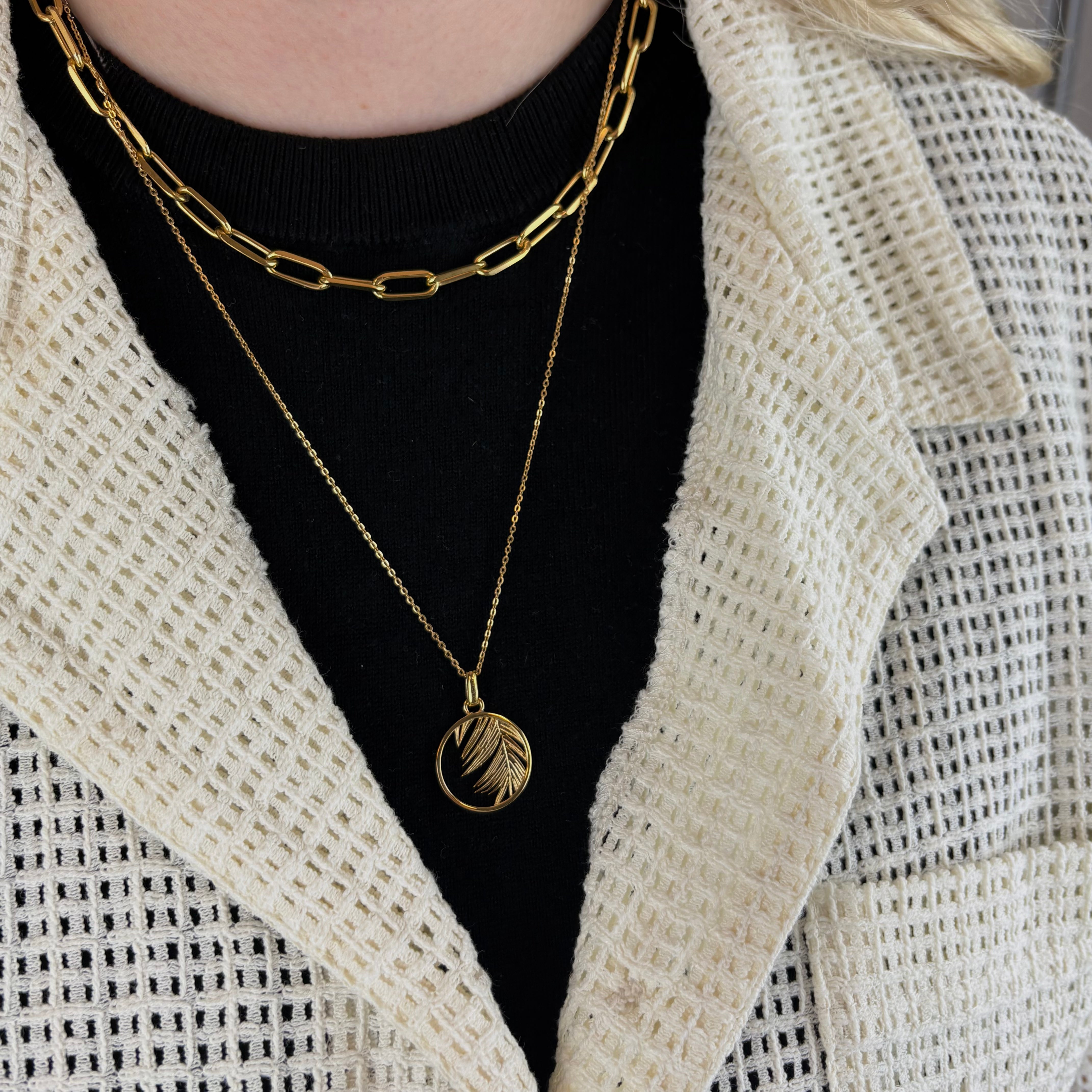 Palm Leaf Vedhæng - Blankpoleret Forgyldt Sterling Sølv