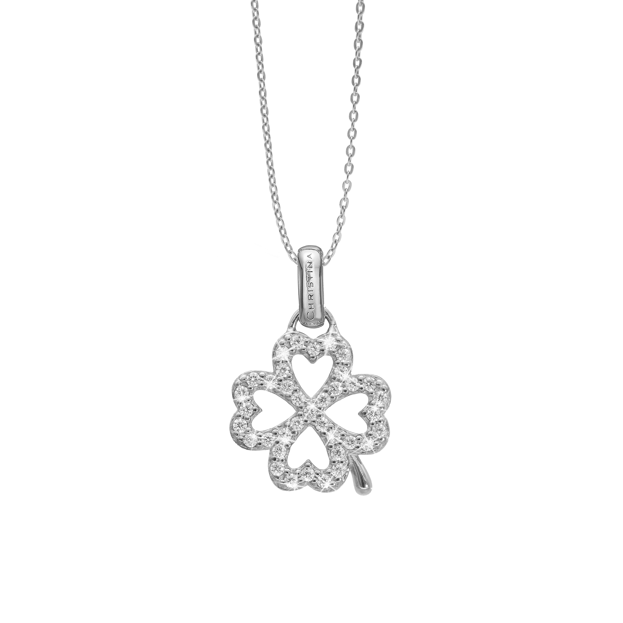 Held kan man aldrig få for meget af – især ikke, når det funkler! CHRISTINA® Shimmery Clover er et allergivenligt vedhæng i 925 sterling sølv, formet som en smuk firkløver sat med 37 glitrende zirkonia sten. Et lille luksuriøst statement, der spreder et gyldent lys.