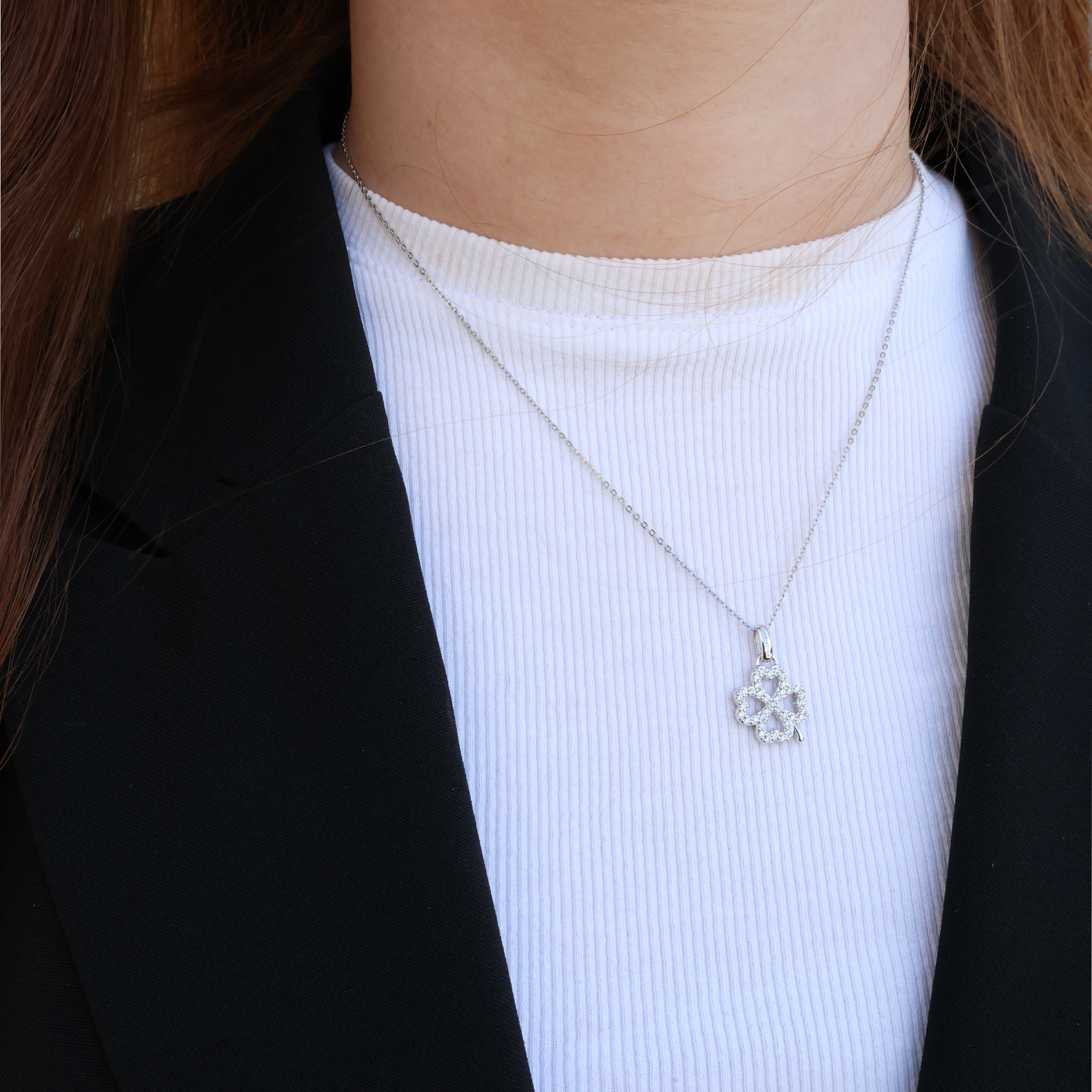Shimmery Clover Vedhæng - Blankpoleret Sterling Sølv m. 37 Cubic Zirkonia