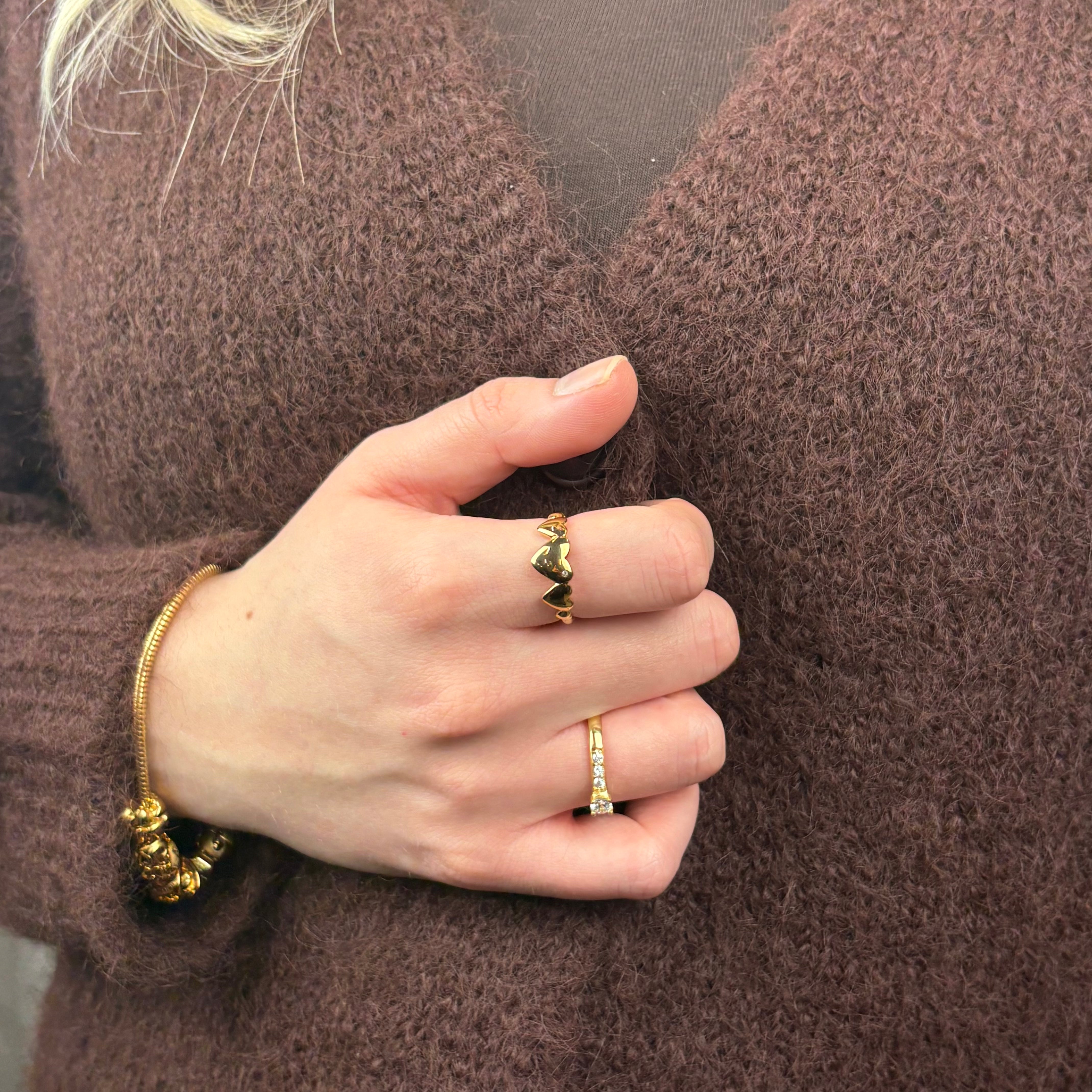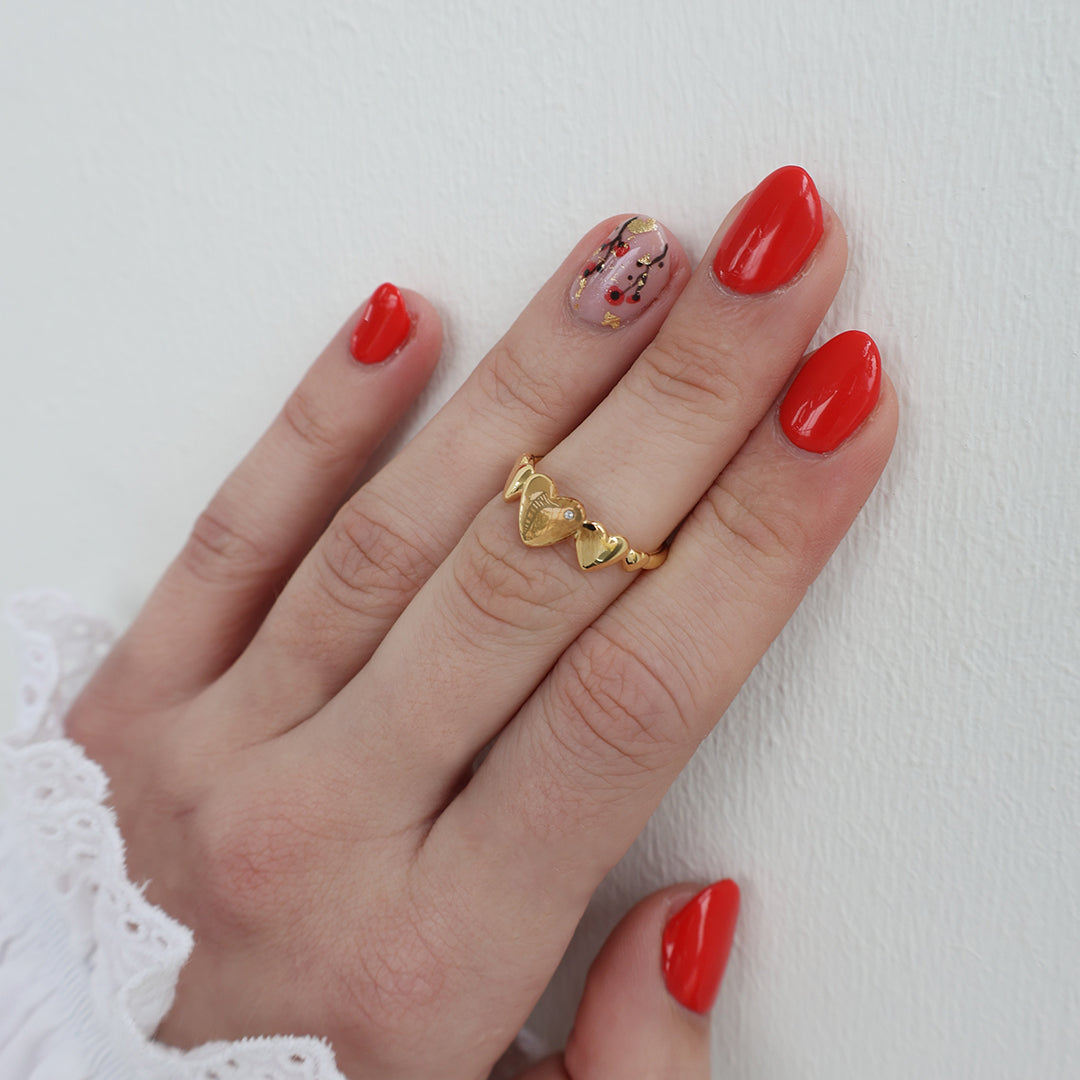 Unik hjertering designet med fem hjerter i forskellige størrelser, hvor det største hjerte i midten har en ægte topas. Smuk at kombinere sammen med vores Diamond Dust.