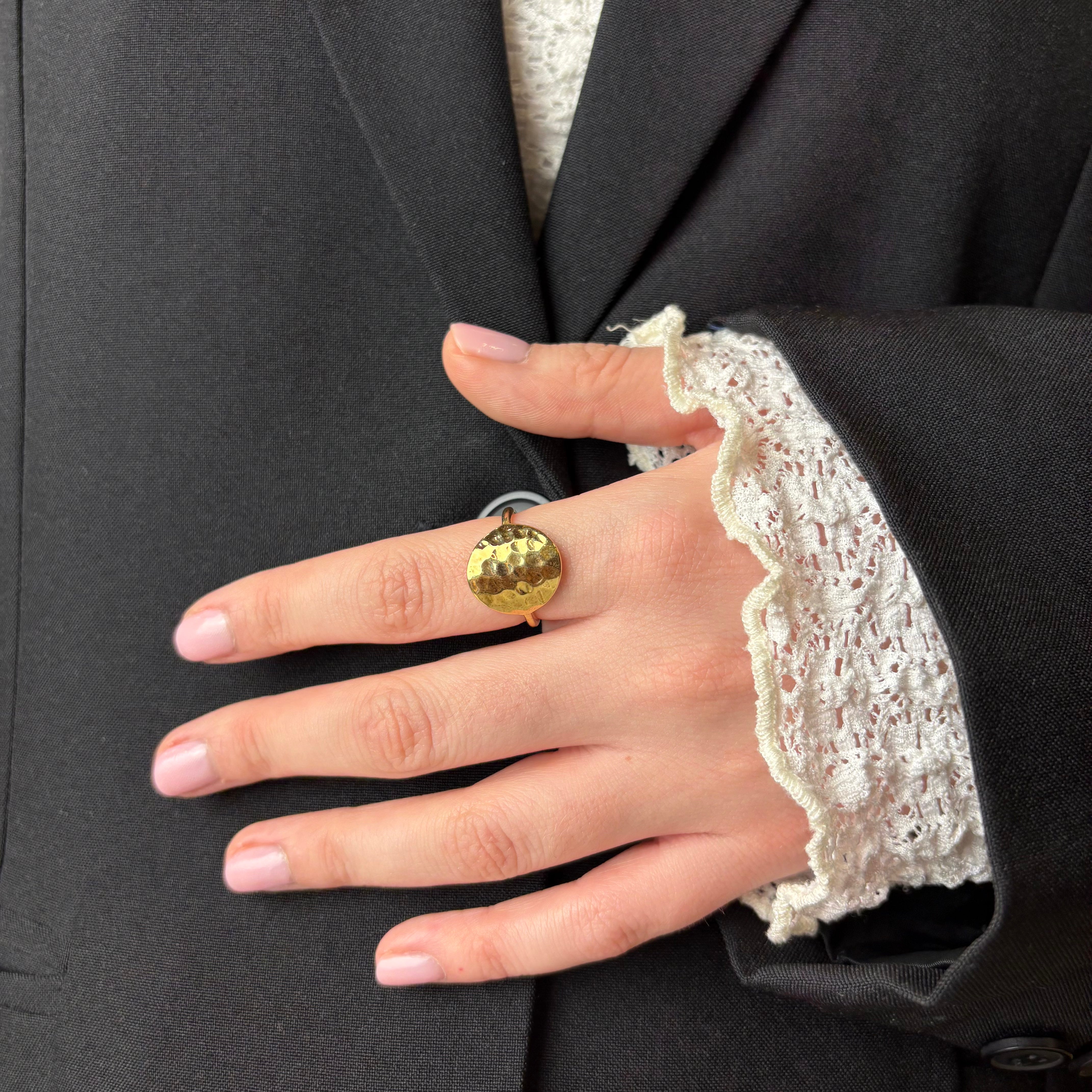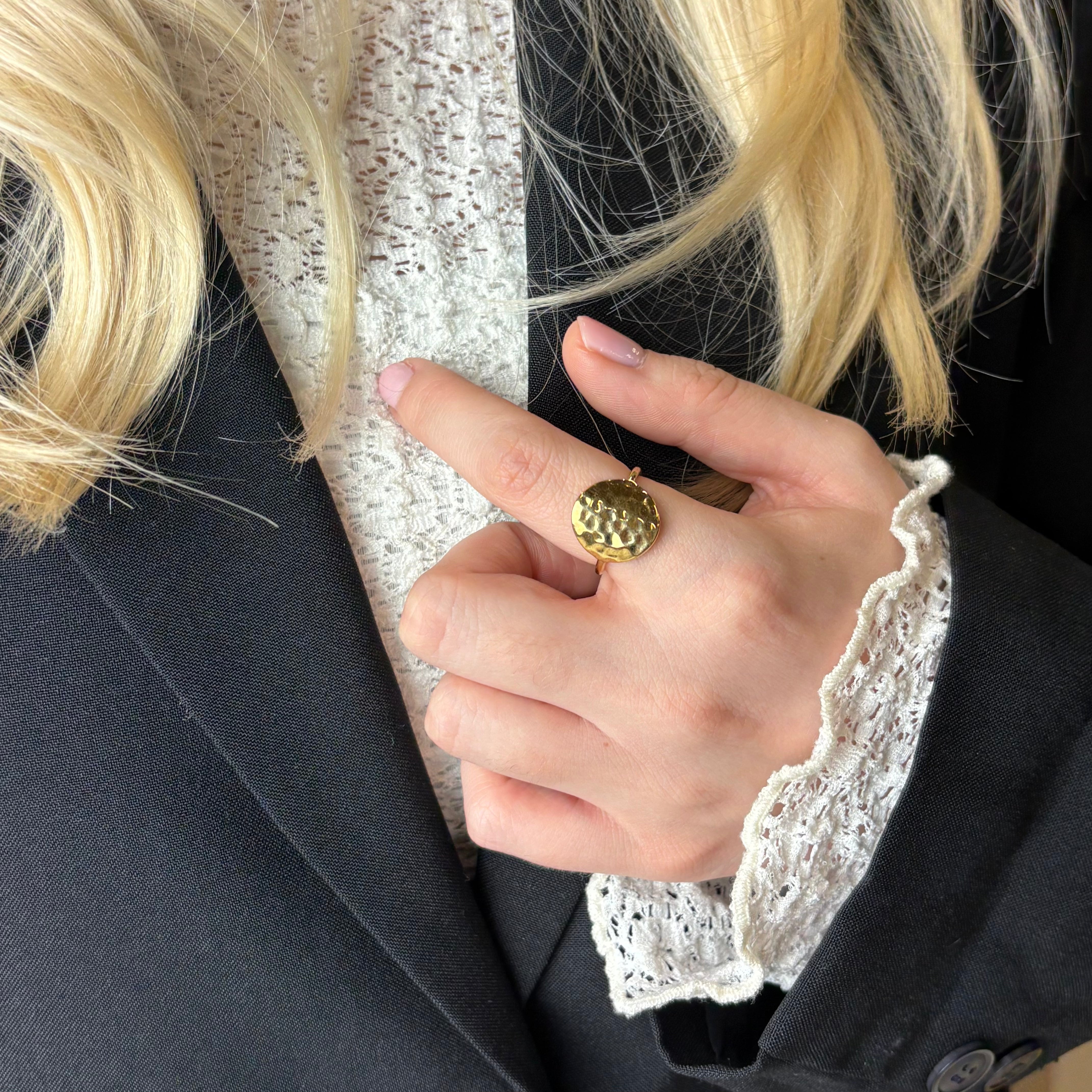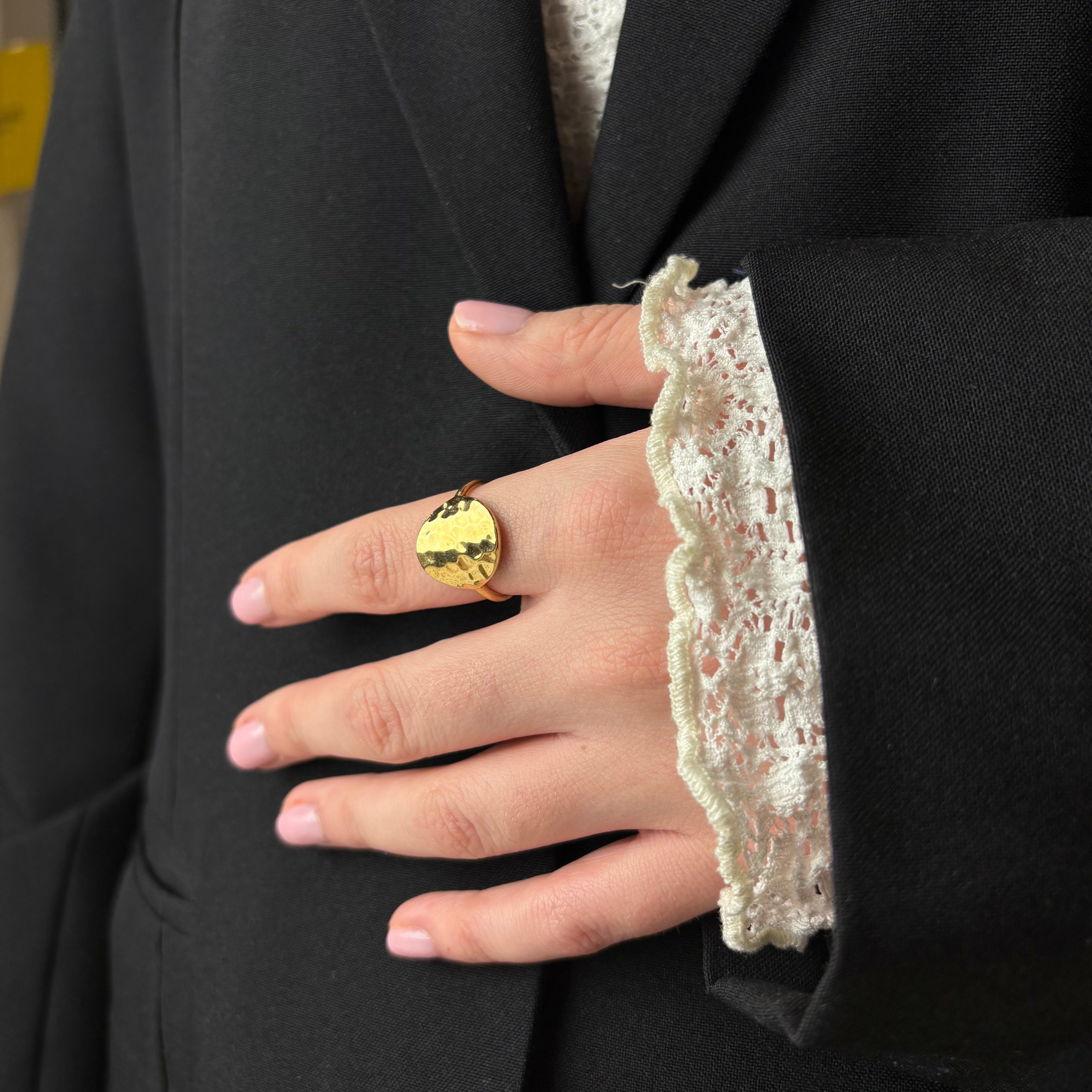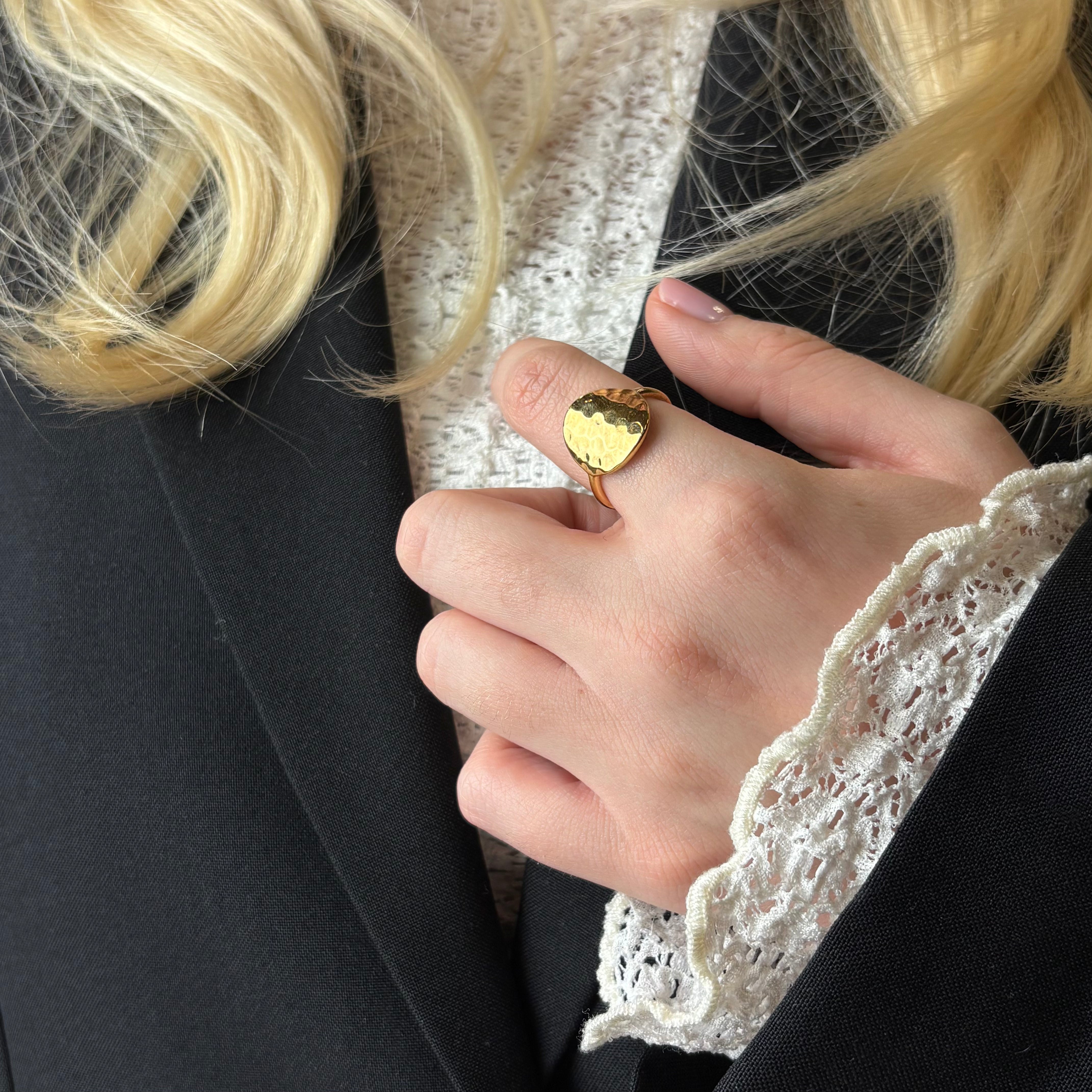Panzer Ring - Hamret Forgyldt Sterling Sølv