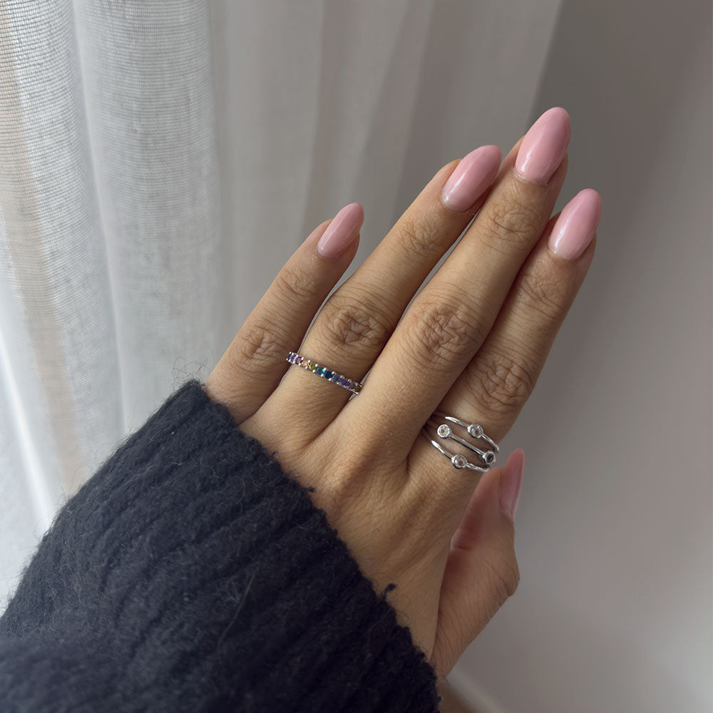 Rainbow Ring - Blankpoleret Sterling Sølv m. 11 Multi color Cubic Zirkonia
