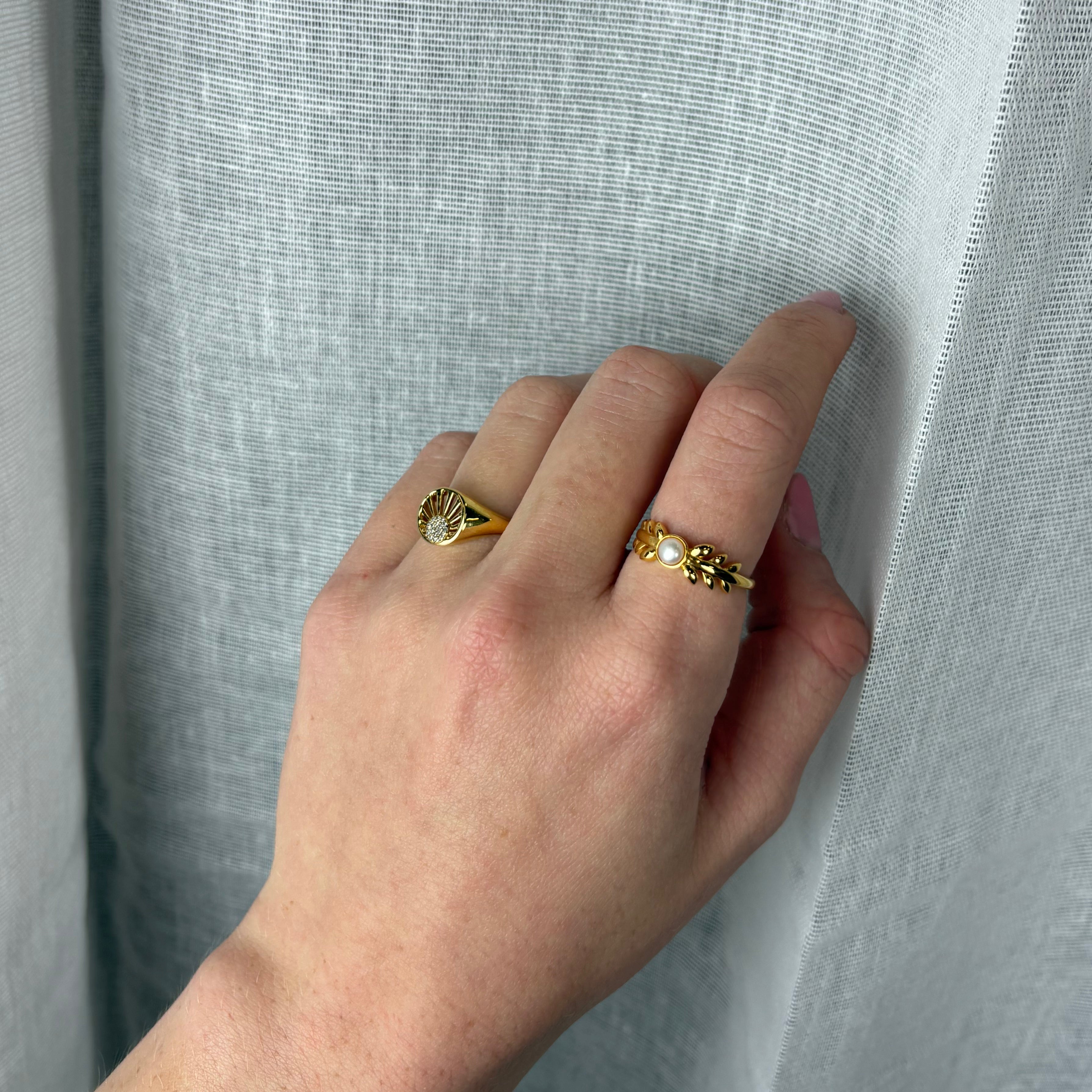 Ocean sunset Ring - Blankpoleret Forgyldt Sterling Sølv m. 19 Hvide Cubic Zirkonia